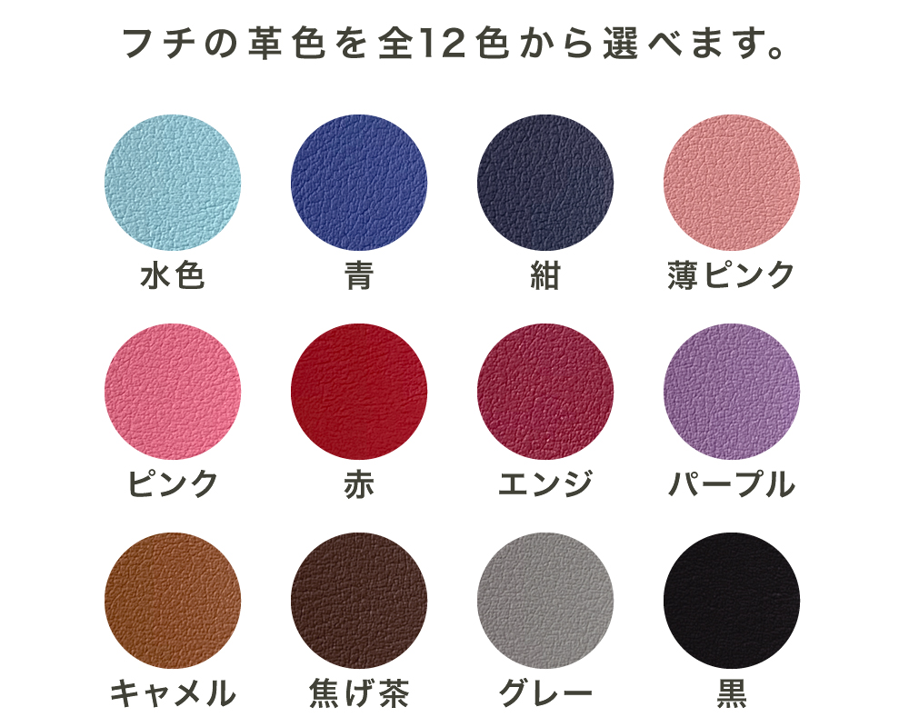 こちらの12色の中からかぶせのふちの色を、
