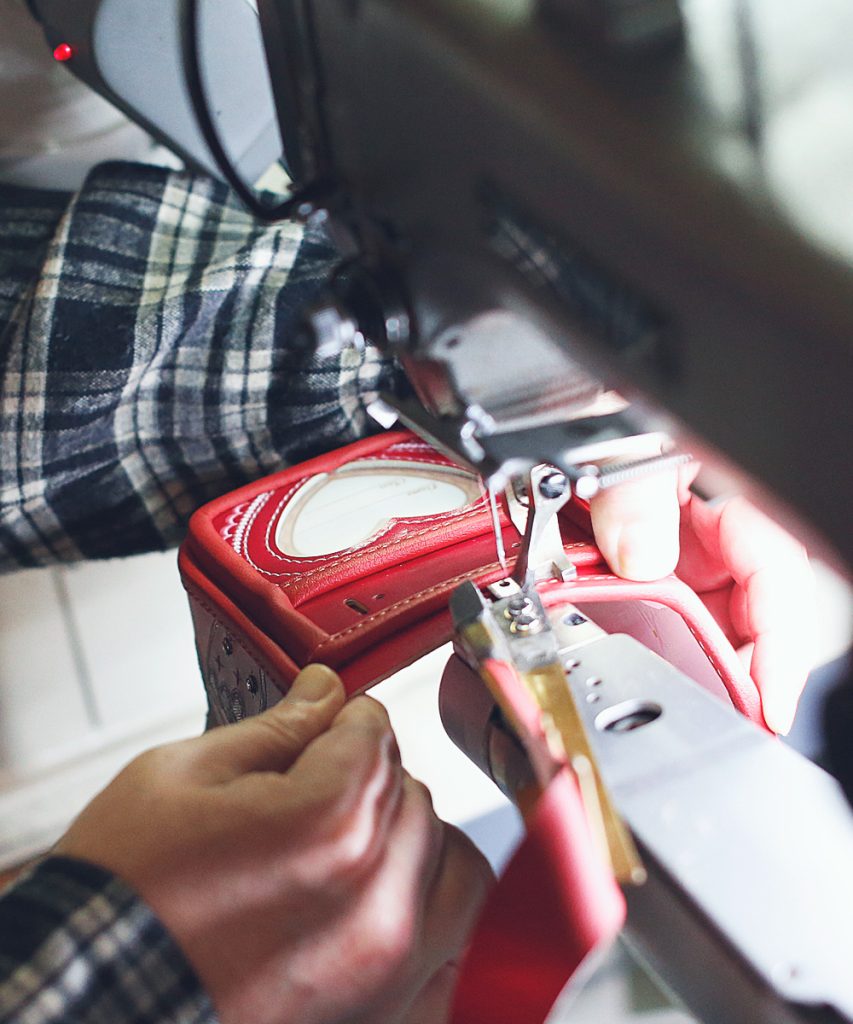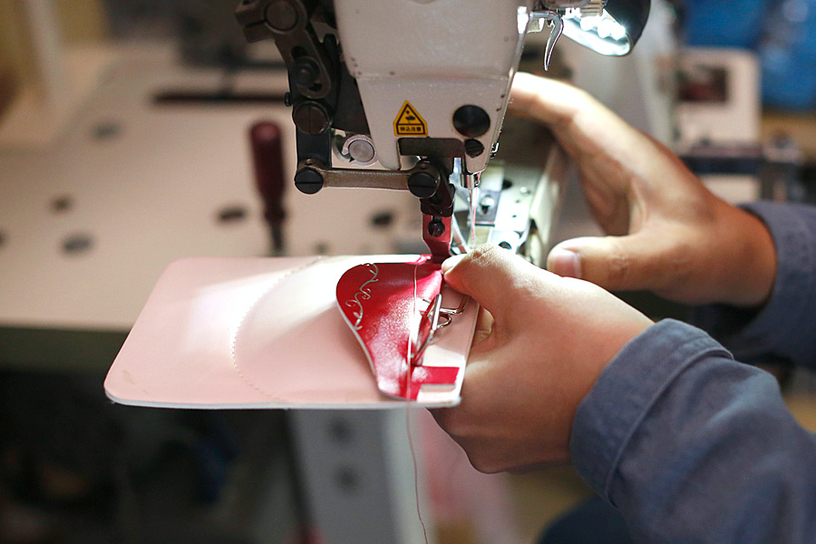カタカタ(ミシンの音)リズムよくミシンを踏みながら、一針一針心をこめて縫製していきます。