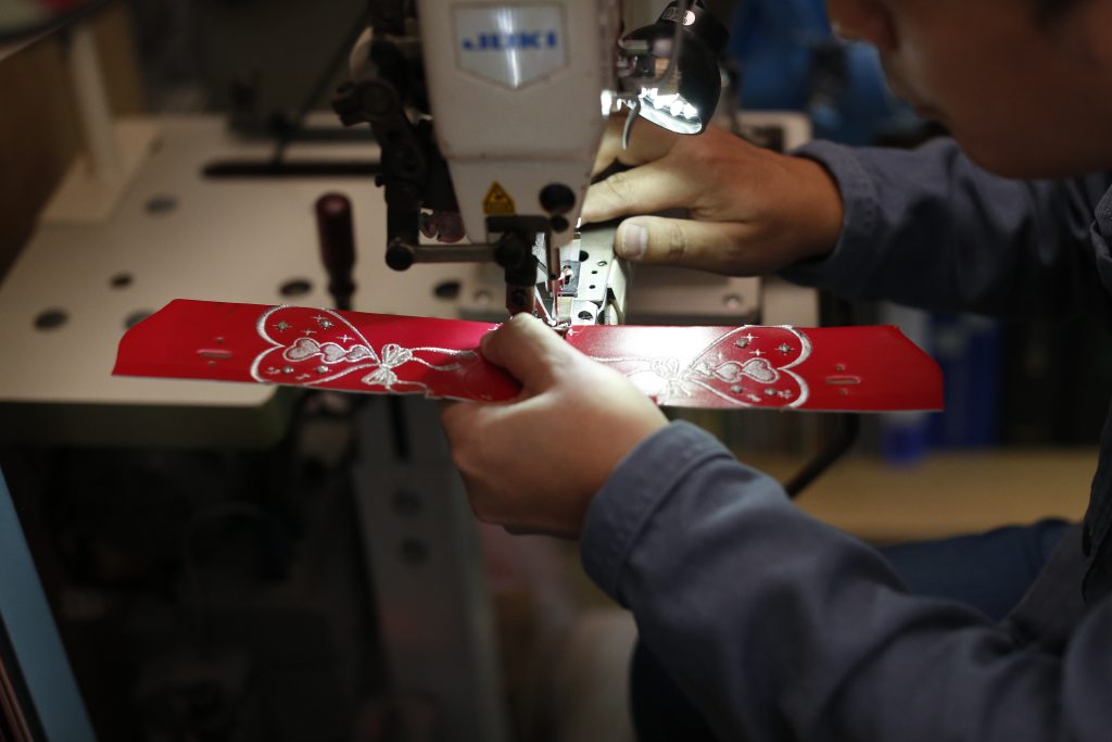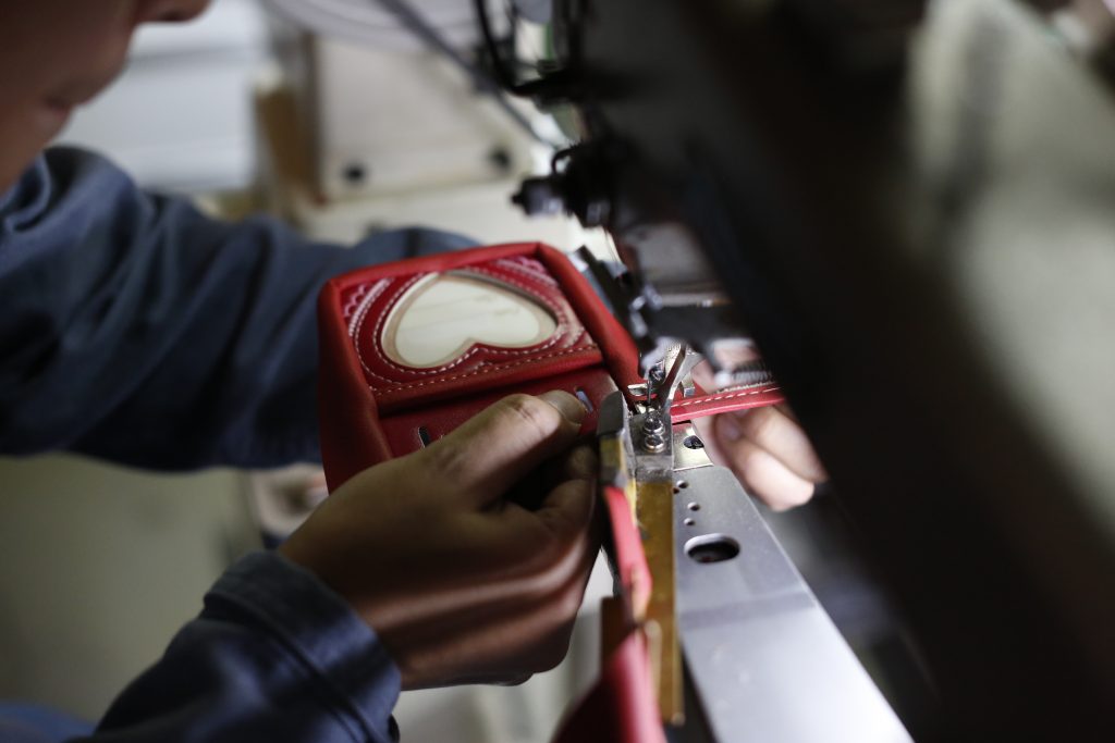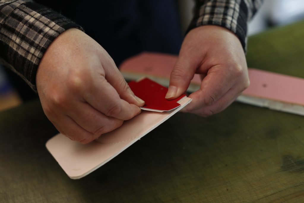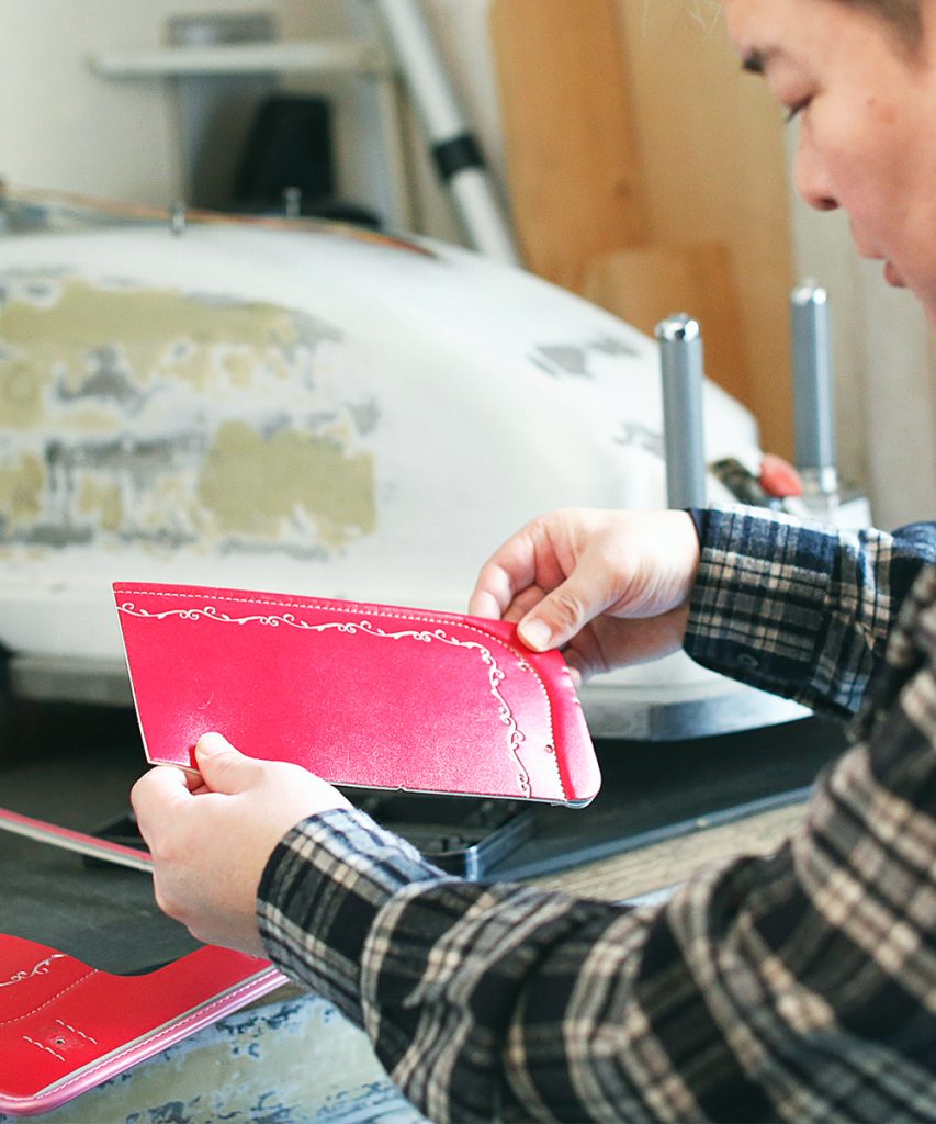 その思いに少しでもお応えするために、裁断をする位置を決める時も、貼り合わせる時も、ミシンで縫製する時も、何個作っても緊張の連続です。
